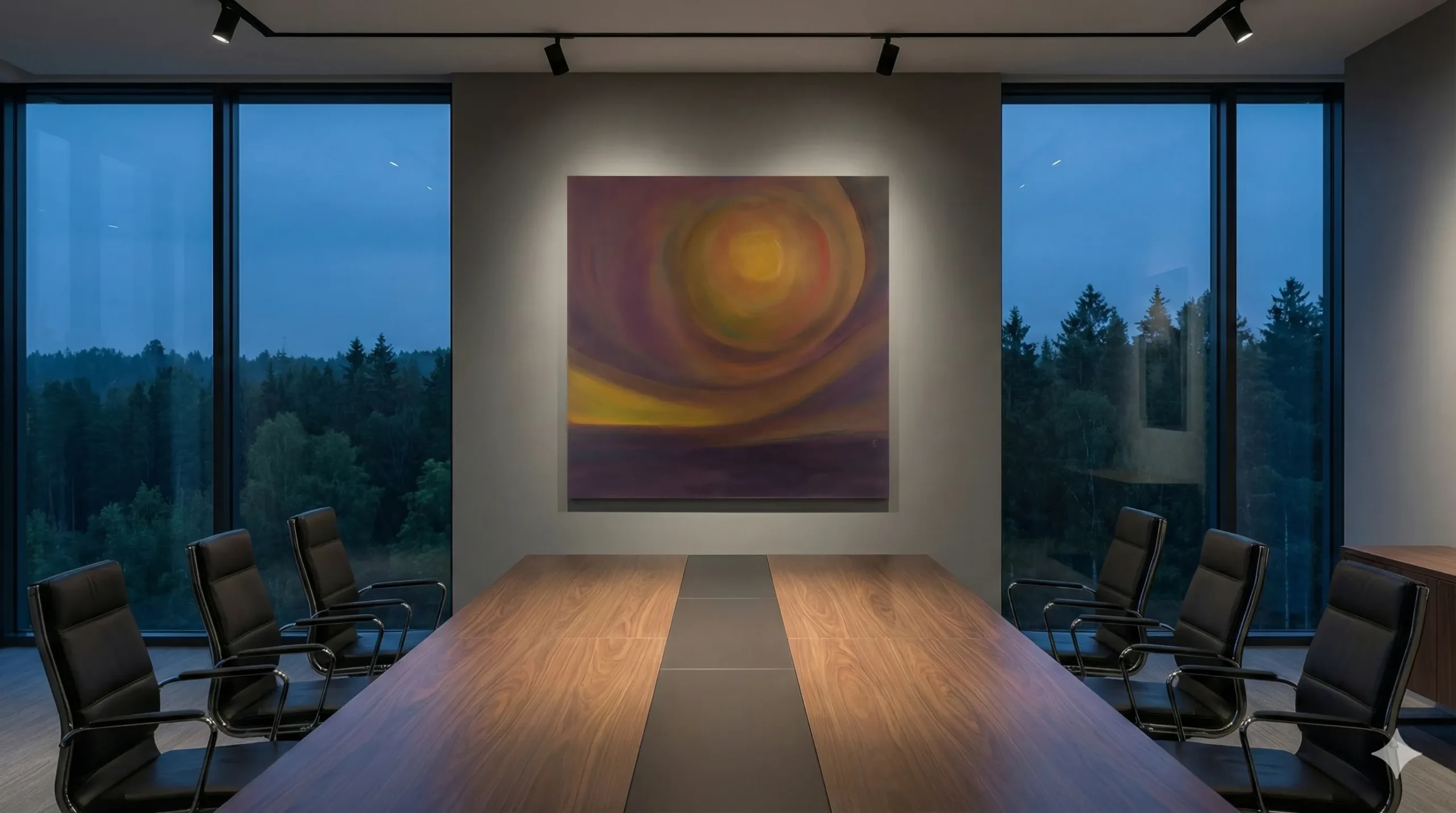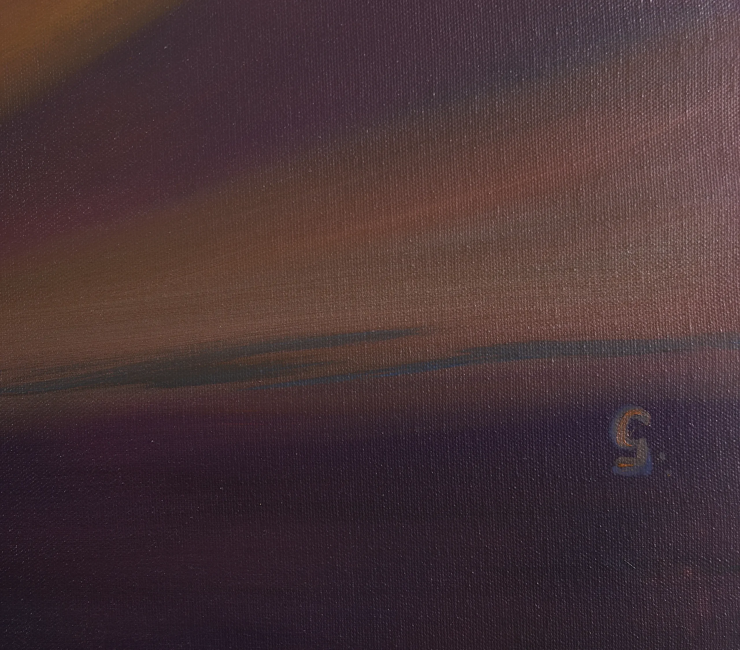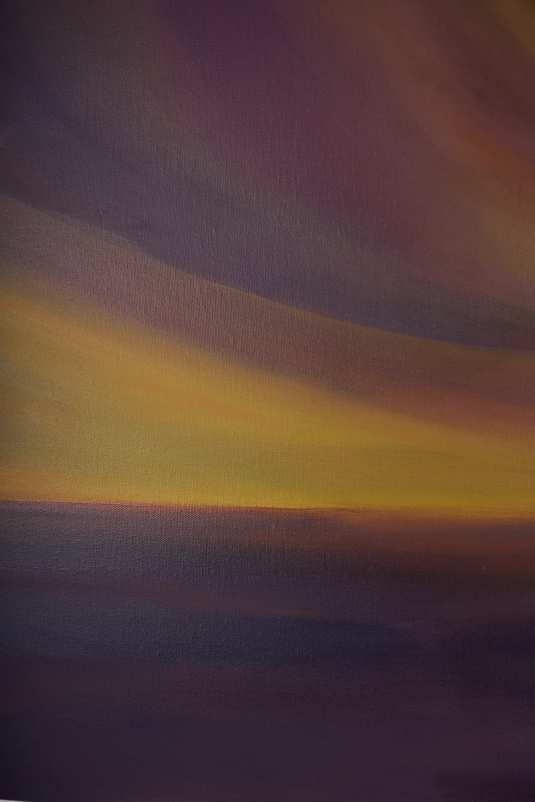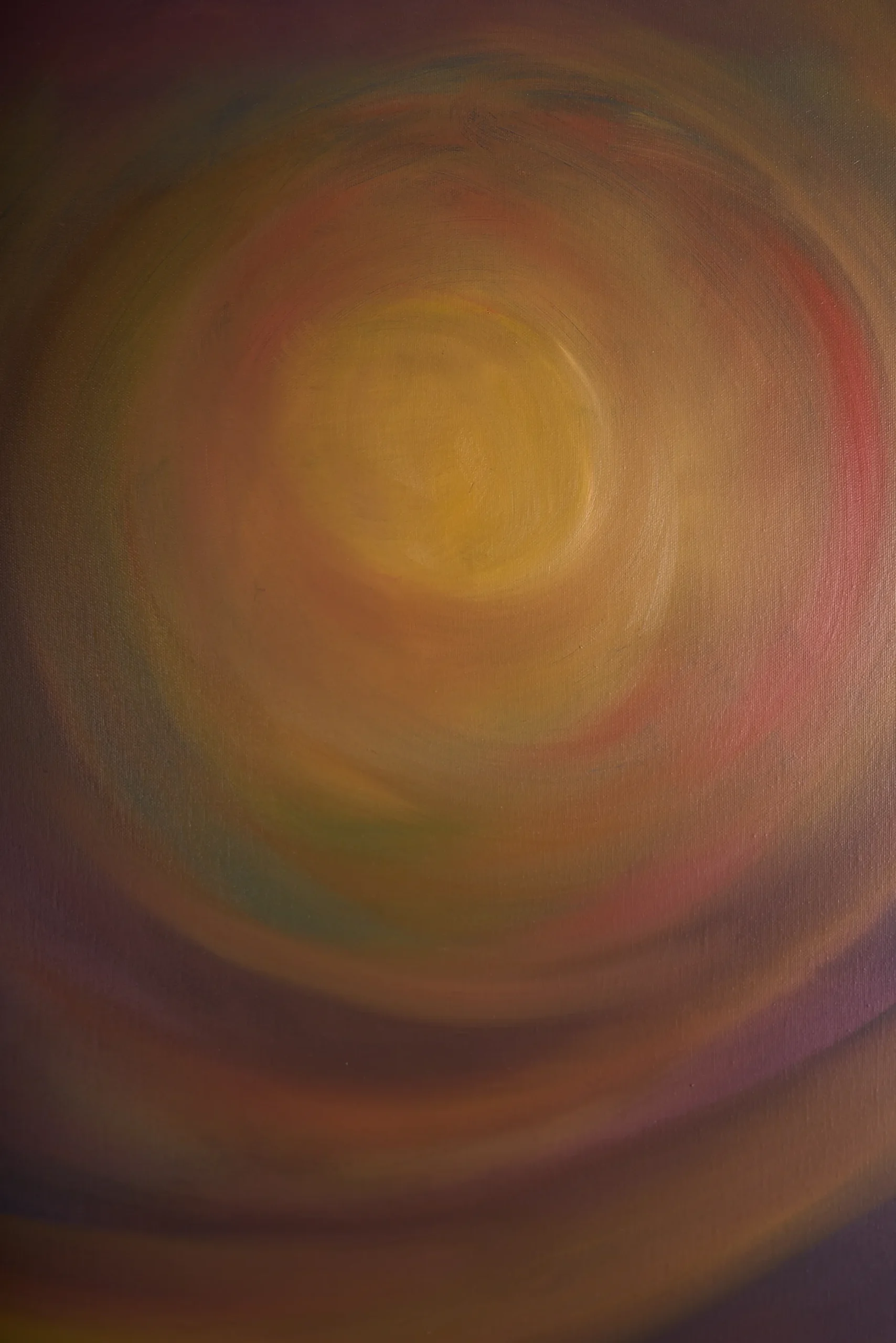 This powerful abstract work invites the viewer’s eye into a vortex of deep purples and warm ambers, and it can be seen at a number of levels. I see it as a work that speaks to our innate desire to find light and purpose within the vast, beautiful unknown. The central, luminous orb glows with the intensity of a distant sun, but it can also be the birth of a newly born idea. The soft, circular brushwork evokes a sense of cosmic movement, reminding us that we are part of a much larger, rhythmic whole. This piece would work very well in a high-energy environment, such as a creative studio or a modern office, providing a constant source of inspiration and a reminder of the transformative power of focused energy.